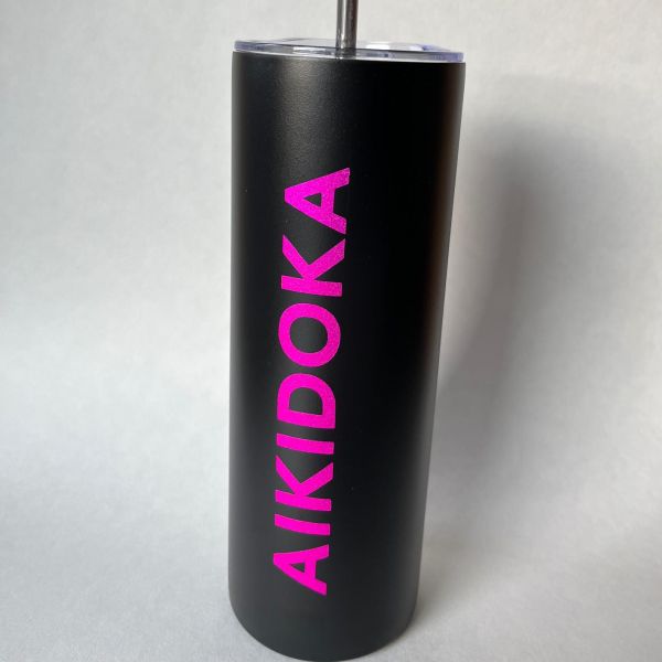 Aikidoka Tumbler— Black with Hot Pink Glitter Lettering